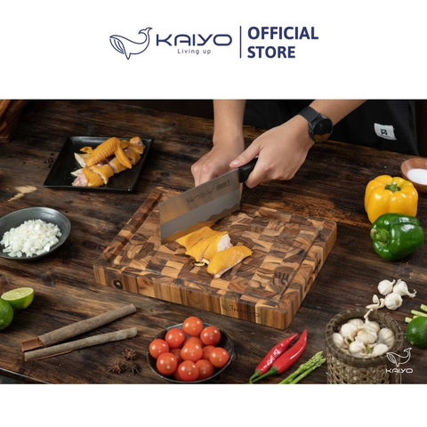 + Thân thiện đối với dao: Thớt gỗ Teak Kaiyo được làm từ chất liệu gỗ Teak – loại gỗ tự nhiên có chứa nhiều chất Silica giúp giữ được độ cứng chắc cho gỗ mà không phá hủy cạnh dao.