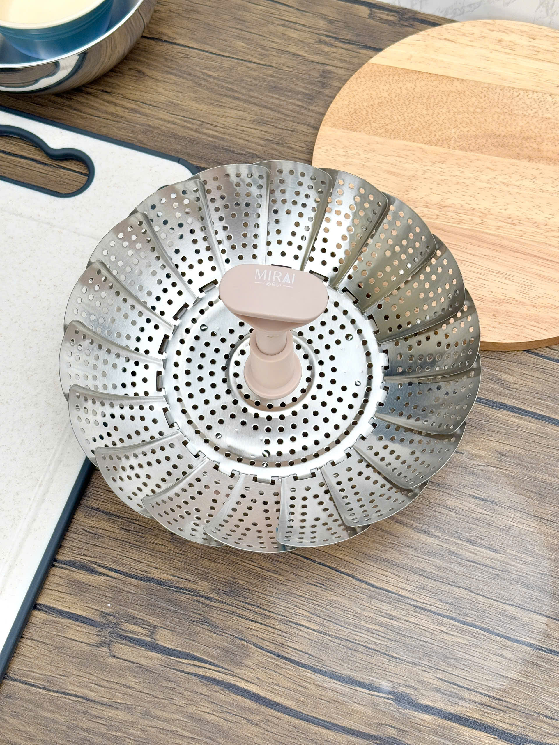 - Công dụng: Hấp cách thủy thức ăn, nấu xôi. Sản phẩm có thể mở ra hết cỡ và thu lại gọn gàng khi không cần sử dụng. Thiết kế nhỏ gọn, tinh tế, đơn giản. Sản phẩm còn được thiết kế với tay cầm bằng nhựa PP dày dặn, chắc chắn giúp dễ dàng lấy đồ ăn sau khi hấp mà không lo bị nóng.